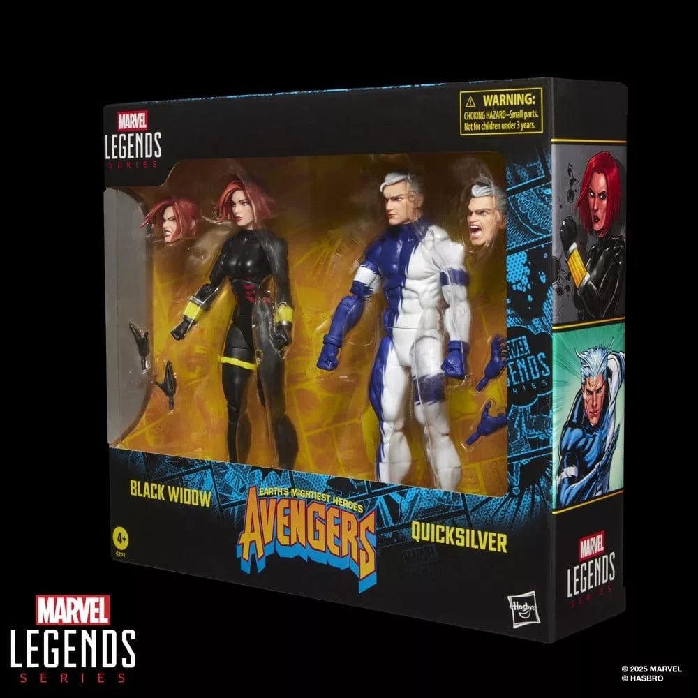 Bring the excitement and wonder of the Marvel Universe to your collection with Hasbro Marvel Legends Black Widow and Quicksilver set! This collectible 6-inch scale Marvel figure set is detailed to look like the characters from Marvel's Avengers: The Crossing era of Avengers comics. The figures are fully articulated with premium design and poseable head, arms, and legs. This action figure set comes with 6 accessories, including alternate head and alternate hands for each character. Hasbro Marvel action figures' 6-inch scale make them great for posing and displaying in fans' collections. Pose the figures and reimagine Avengers comics-inspired scenes on your shelf with Marvel Legends action figures and Marvel collectibles. Longtime Avengers super-spy Black Widow and speedster Quicksilver who have faced danger together countless times help uncover a traitor in their midst leading to a turning point in the Marvel Universe -- Avengers: The Crossing.