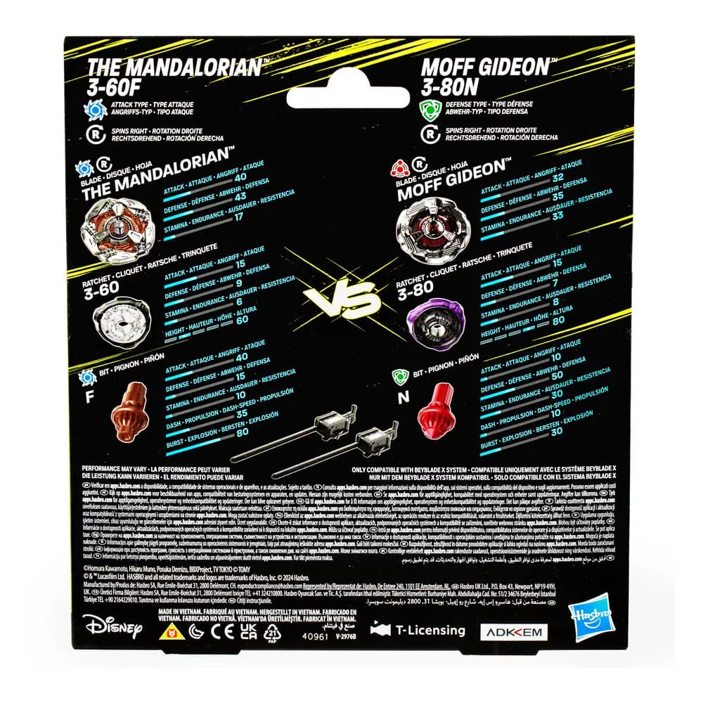 Beyblade X and Star Wars Collab The Mandalorian 3-60F vs. Moff Gideon 3-80N
