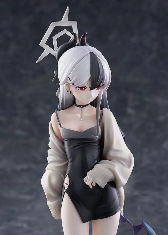 From the popular game 'Blue Archive' comes a 1/7 scale figure of Gehenna Academy's member of Problem Solver 68, Kayoko, in the lustrous dress she wore during an undercover mission. The figure retains Kayoko's typically calm and composed aura while showcasing a chic and delicate beauty that perfectly accentuates a special night out. The mature, sophisticated demeanor of the original artwork has been faithfully reproduced in figure form. From Kayoko's characteristic monochrome hair to her supple physique and halo, the meticulously crafted details of this figure are truly a sight to behold. Kayoko's outfit also features a form-fitting black dress that accentuates the body's curves paired with an oversized cardigan draped dramatically over one shoulder. The contrast in material textures is expressed through variations in glossiness and intricate painting, achieving a realism only possible with a figure. Also includes a soft smiling face replacement part. Don’t miss the chance to add this precious snapshot of Kayoko's downtime to your collection!