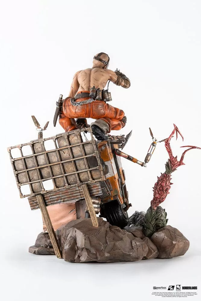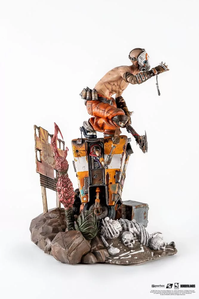 Welcome to Pandora, where your happy ending awaits! Bring the mayhem and chaos of Borderlands to life with this 1/6 Scale Diorama of the iconic Psycho Bandit playfully tormenting hapless robot Claptrap in front of a 'scenic' Pandoran vista!