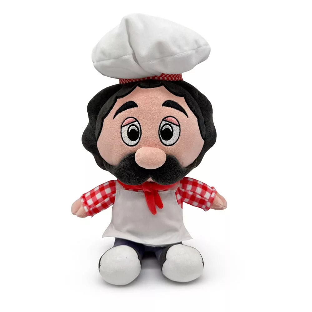 This isn't one of Pasqually's jokes, he's really arrived at Youtooz for his plush debut! Sitting at 9 inches tall with a thick moustache at the centre of his face underneath half lidded eyes and slightly raised eyebrows, shaggy black hair covers his head below a floppy white chef hat that has a red checkered base. Wearing a neckerchief that hangs over the white apron tied around his waist, he's dressed in a long sleeve checkered shirt, blue pants and black sneakers. This plush is packed to the seams with 100% PP cotton and is made of the softest minky material, absolutely perfect for cuddling or cooking up a storm with!
