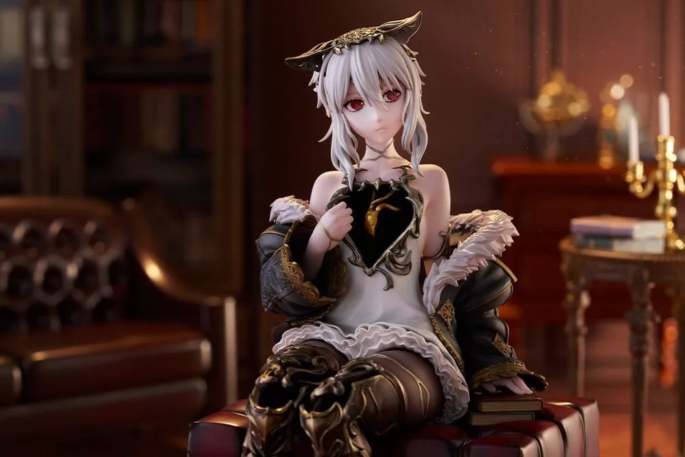Lou MagMell from CODE VEIN II is released as a scale figure! She sits in a relaxed pose with one hand resting on a stack of books. An antique stool acts as the base, a gorgeous addition that allows fans to further enjoy the world of the game. Lou’s iconic halved heart is faithfully recreated, along with her hollow chest and legs! Careful attention was paid to her flowing body lines and the volume of her thighs, resulting in a beautiful sculpt that could only be achieved in figure form. The heart is painted with a pearlescent and metallic coating, giving it an enchanting glow. The kintsugi (gold repair) technique uses subtly different colors for each part, creating a sense of luxury. Add this Partner to your collection today!