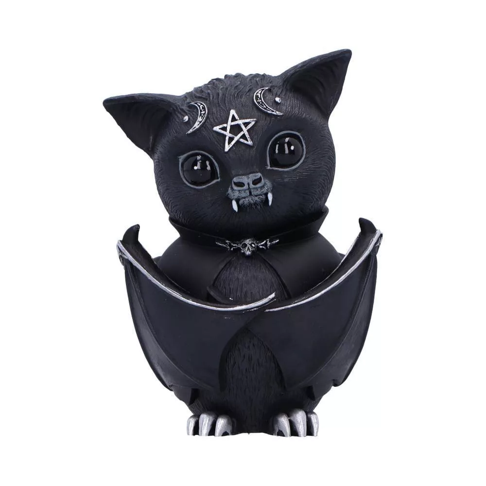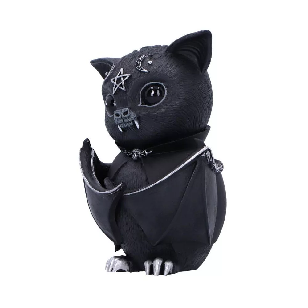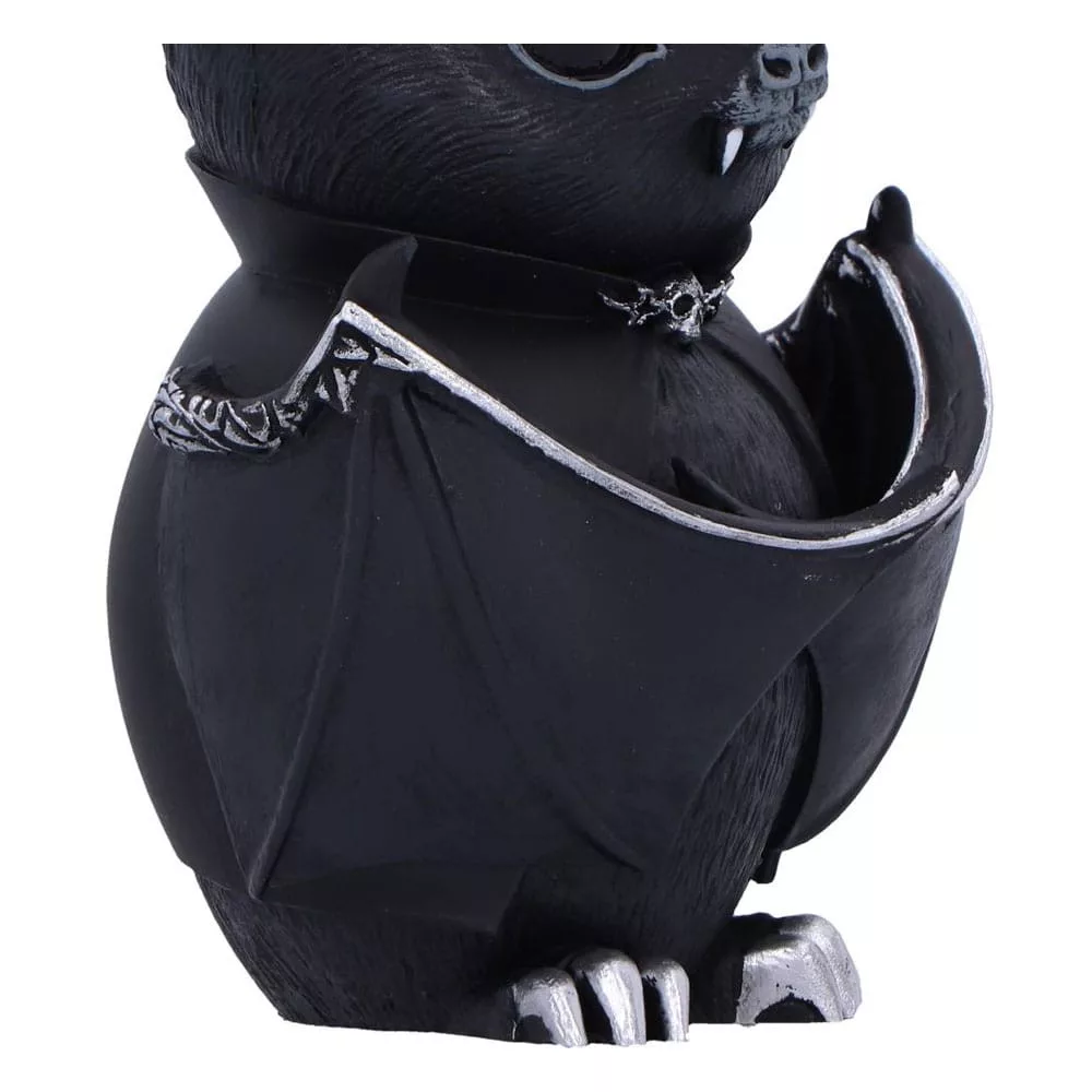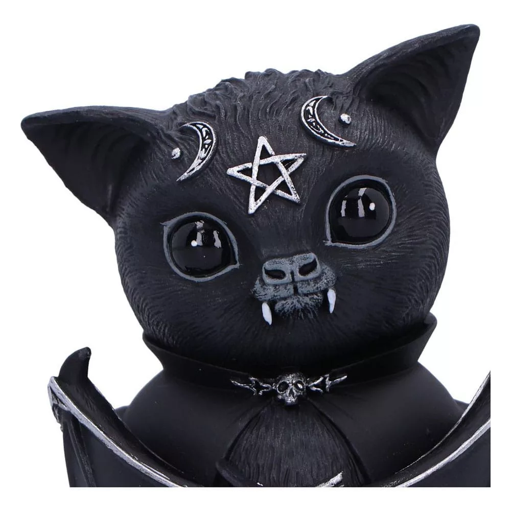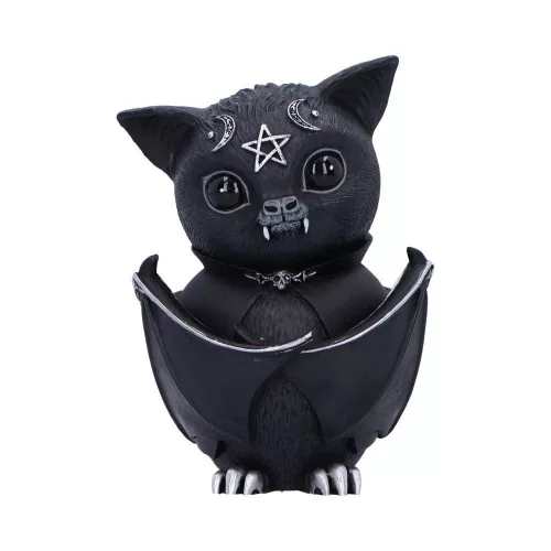 From the bewitching mind of our in-house design team comes our adroable Beelzebat figurine.This strange creature is the union of good and evil. As you look into its black eyes you notice that all is not as it seems, darkness resides within. Inside of this bat appears to be a vampire spirit, encapsulated with abnormally large fangs and a black cape. The bat is decorated in ornate silver detailing and satanic symbology. Cast in high-quality resin and carefully hand-painted this figurine is likely to be the cutest occultist you've ever seen.