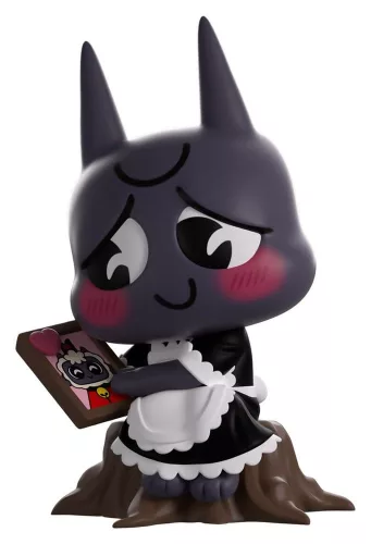 Don't worry, Narinder, we all feel the same way about The Lamb! Well, maybe not exactly the same way... Sitting atop a brown wooden stump at 4 inches tall and staring down at a picture of The Lamb that they caress tenderly with their left hand, deep pink blushing cheeks beam out under love-filled eyes as pointed ears poke out front the top of their head and they wear a black maid outfit with a white apron and frills along the hem. The exterior of their packaging sees a small shrine to The Lamb in a rose filled field, while the interior is covered in a pale pink splatter and littered with off-white symbols. The protective sleeve is then filled with crosses and chains that reach into the sky as their figure can be seen through the large, clear window at the packaging's front. This collectible ships in a matte, embossed, protective outer sleeve and a custom-sized plastic protector for maximum protection during shipping.