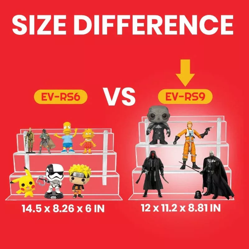 Elevate your collection with EVORETRO Acrylic Risers, designed for showcasing action figures, Funko Pops, Nendoroids, Amiibos, and more. These 4-tier stands, made of sturdy 3MM thick acrylic, provide an impeccable display for your collectibles. With taller and wider steps, they are perfect for larger figures. Easy to assemble, these risers with dimensions of 12 x 11.2 x 8.81 inches quickly become the centerpiece of your collection. Ideal for collectors and as gifts, these stands will transform any collection into a spectacular display