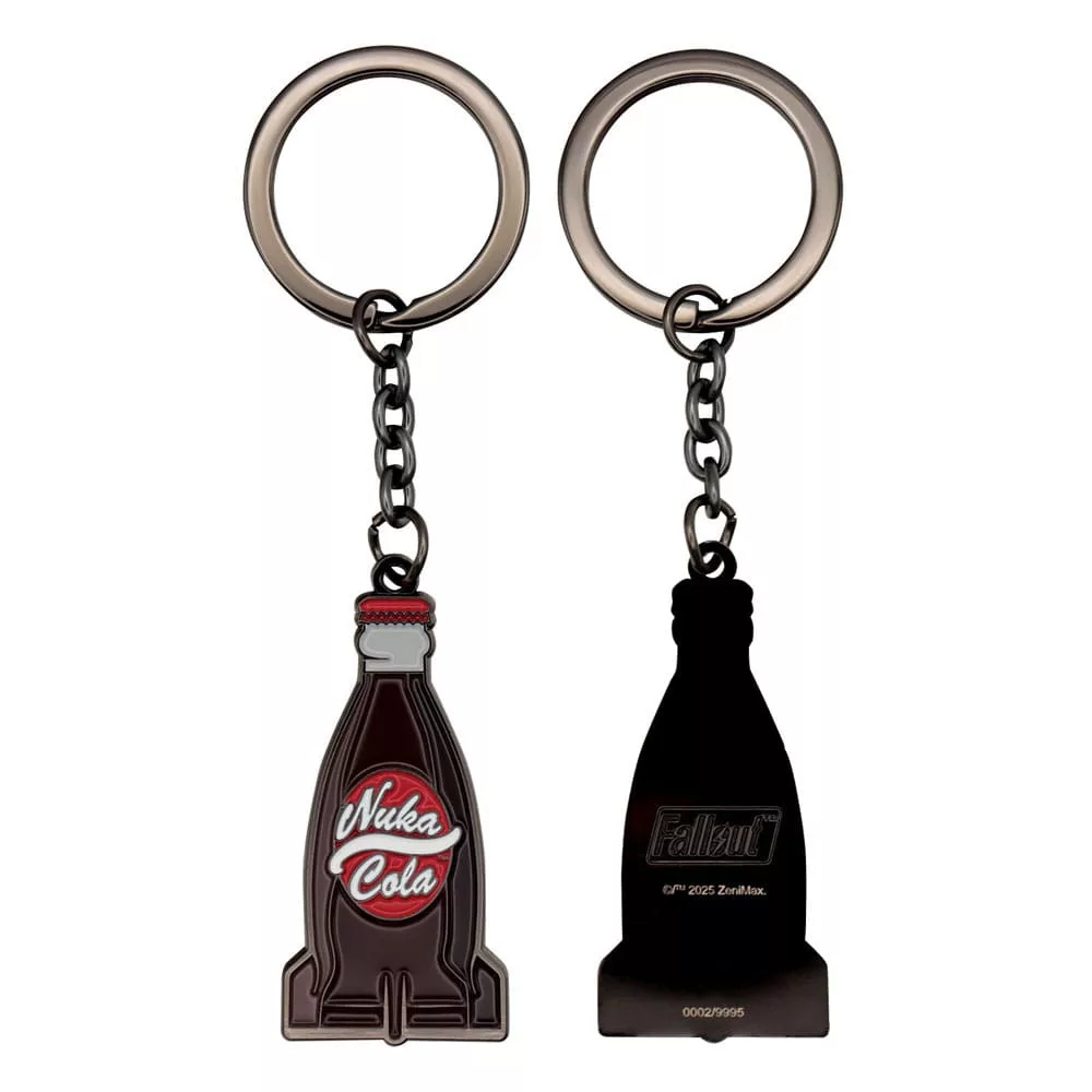 'Quench your thirst for all things retro-futurista and grab your own piece of the wasteland! Based on the iconic in-world brand, this metal Nuka-Cola keyring measures 55 x 27mm, is limited to 9995 worldwide and individually numbered on the reverse.