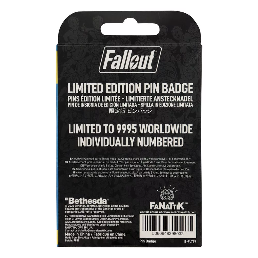 Whether you're out bartering in the Wasteland or showing off at your local settlement, this pin measures 42 x 39.5mm and comes complete with a rubber clasp. Limited to just 9,995 pieces worldwide, each pin is individually numbered, making every one a unique addition to your Fallout collection.
