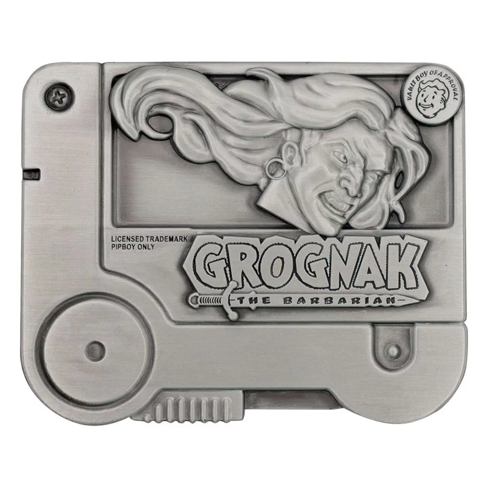 Straight from the pages of the pre-war Grognak the Barbarian comics, this limited-edition collectible holotape lets you wield the power of the ultimate axe-swinging hero...without attracting a horde of Feral Ghouls. Based on the Vault-Tec approved Pip-Boy RPG, Grognak and the Ruby Ruins, this replica Holotape features a heavily embossed design and double-sided detail crafted for Vault Dwellers who demand that little bit of extra fun.