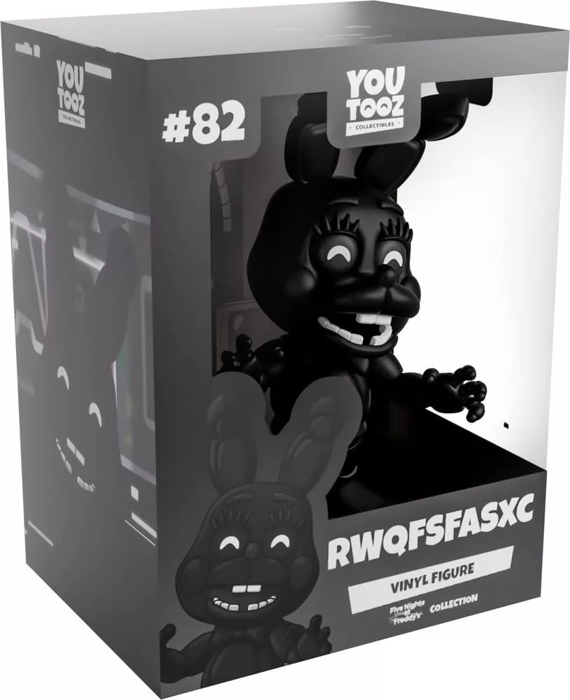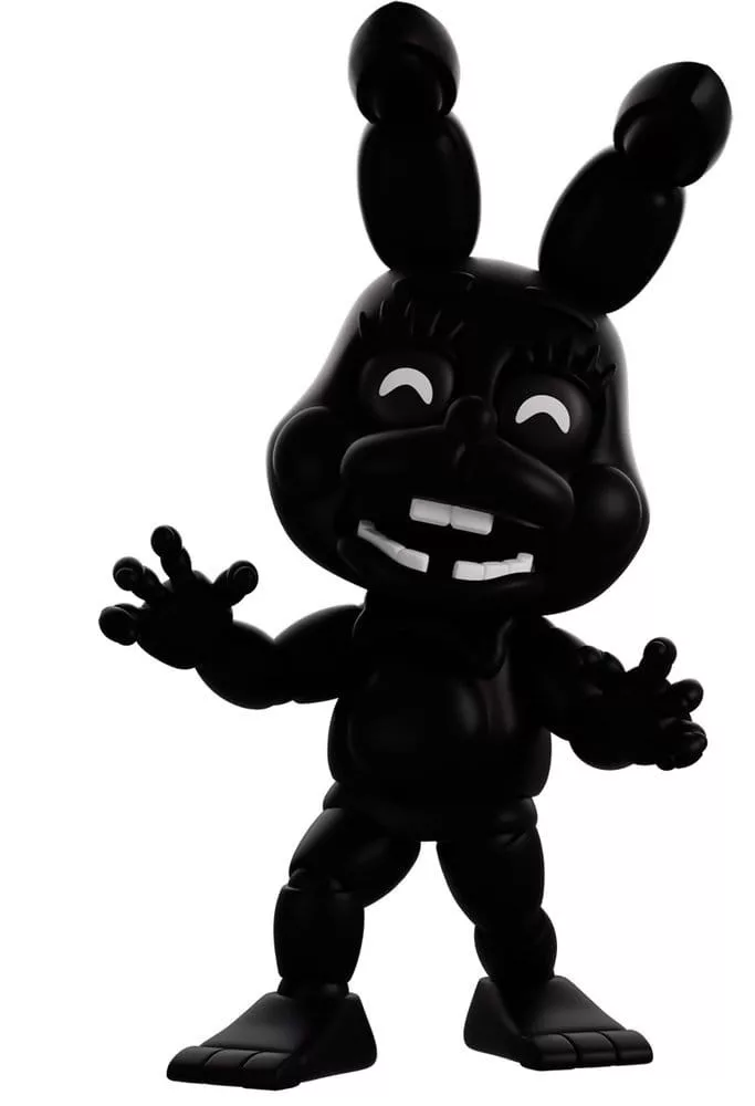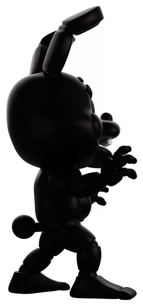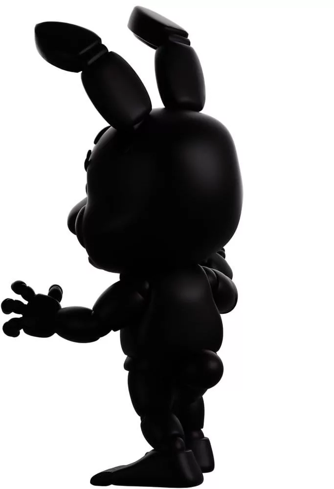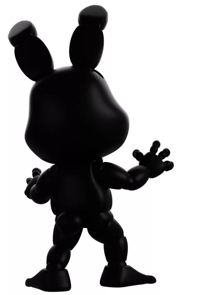 Someone... or something... has snuck into Youtooz along with Toy Bonnie! Bathed in black shadows and standing at 5.3 inches tall with his hands outstretched as bright pupils shine out from lashed eyes, a pair of long ears curves forward from the top of his head above bulging cheeks. With stark white buck teeth hanging from his open muzzle, a bowtie rests on his neck as a small round tail pokes out from his back, and segmented arms and legs connect to the torso of his suit. The exterior of their packaging sees half of Freddy's head resting atop a television with a close-up of their face on the screen, while the interior looks into a dark room with a checkered floor as old monitors are stacked in the background. The protective sleeve is then covered in vertical black and grey stripes as thick wires dangling from the to,p and their figure can be seen through the large clear window at the packaging's front. This collectible ships in a matte, embossed, protective outer sleeve and a custom-sized plastic protector for maximum protection during shipping.