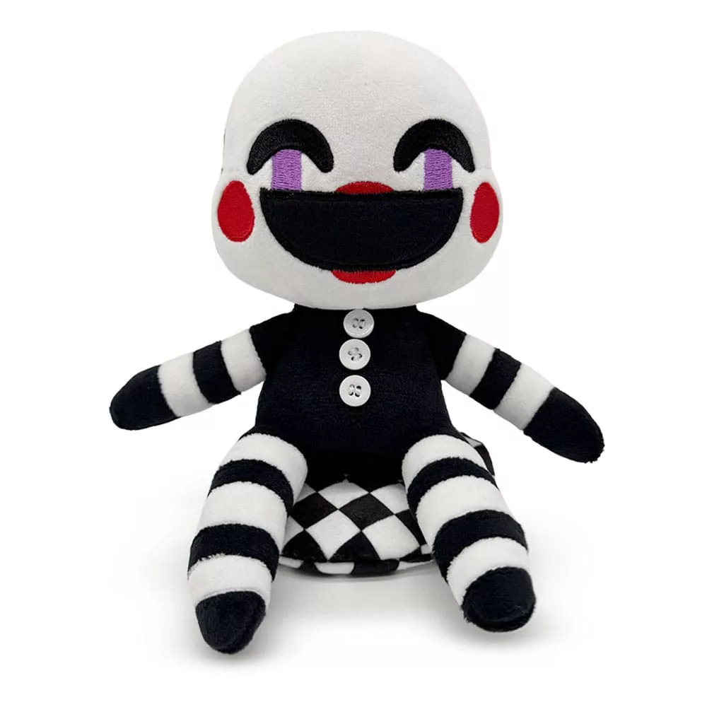 The Marionette has returned and they're ready to watch your every move and never leave you alone! Sitting at 6 inches tall with purple lines running from black eyes down to the huge smile creeping across their white face and deep red circles on their cheeks that match thin lips, long striped arms and legs hang from their body as a trio of buttons are attached to their chest. This plushie is made of normal and sublimated minky materials, is packed to the seams with the most huggable squishy 100% PP cotton and comes equipped with a magnetic disc to let it perch firmly atop your shoulder as the best accessory and a true testament to your love of the fandom!