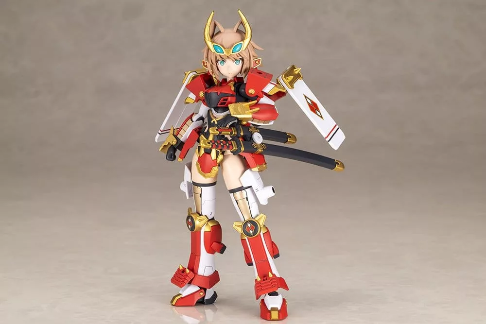 From the creative minds of Kunio Okawara and Humikane Shimada comes FRAME ARMS GIRL SHINGEN! Shingen powers up and is released as SHINGEN KAI! Frame Arms Girl Shingen Kai is the latest release in Kotobukiya's original model kit series. The model is based on the Frame Arms model designed by world-renowned Japanese mecha designer, Kunio Okawara, and transformed into a female character illustrated by Humikane Shimada.