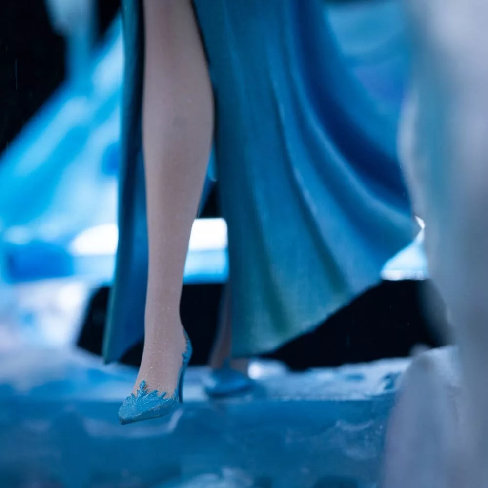 In a majestic pose, surrounded by ice formations sculpted with translucent shine, Elsa radiates power and elegance. The movement of the dress, the delicate work in her hair, and the magical energy flowing from her hands make this piece a luxurious tribute to Disney's beloved character.