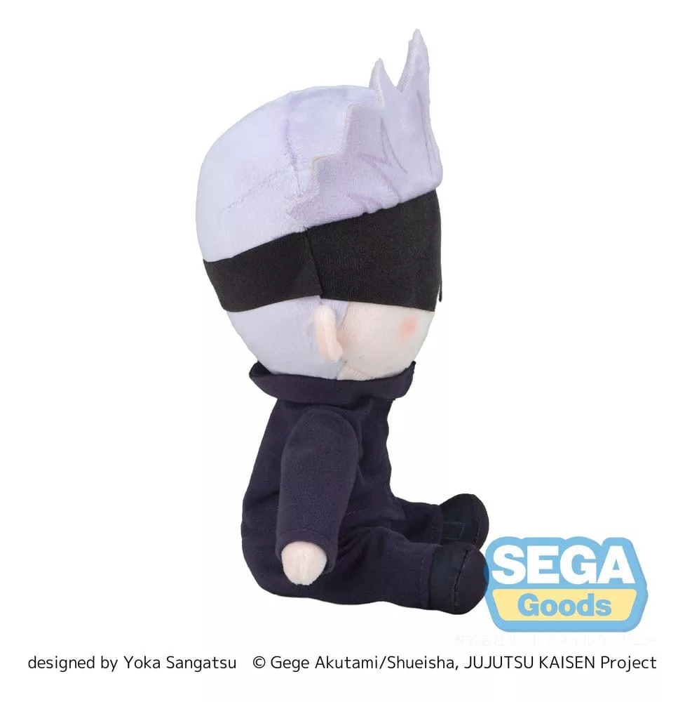 This is a fuwa petit plush of Satoru Gojo from the anime 'Jujutsu Kaisen', celebrating the 5th anniversary. Manufactured by SEGA, this medium-sized plush is a great addition for any fan.