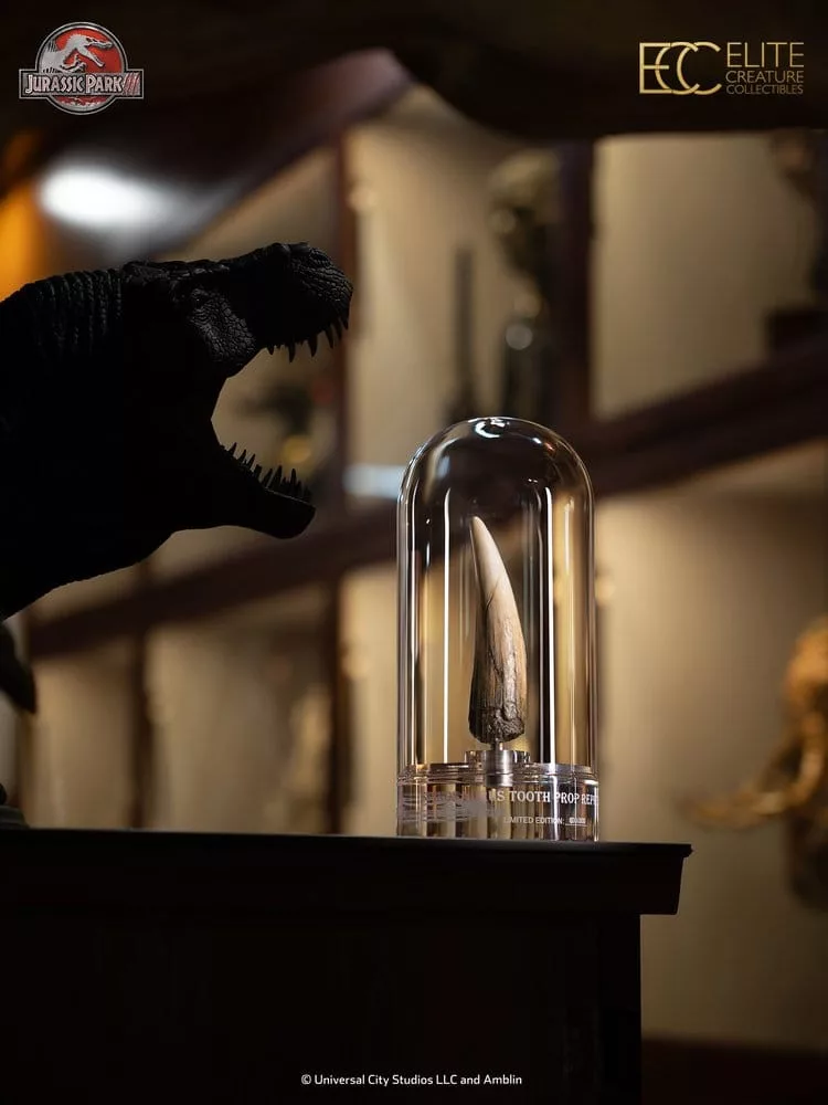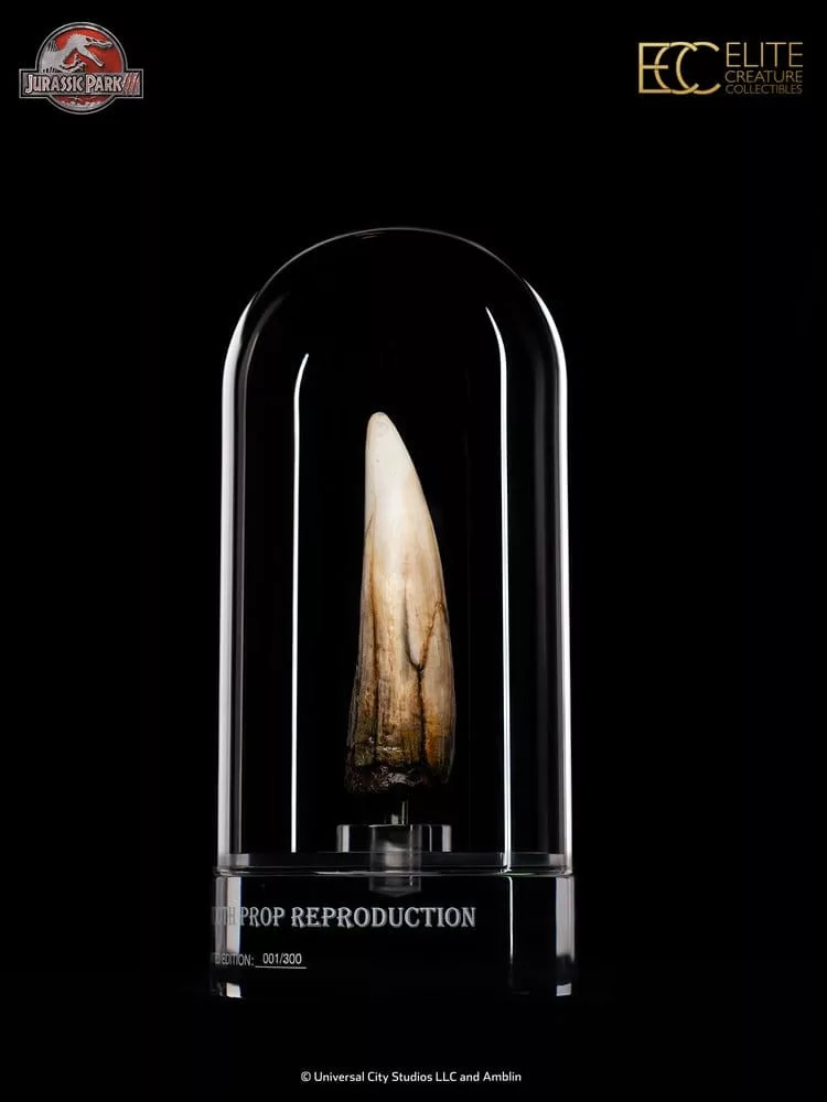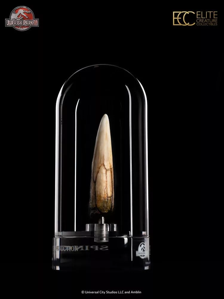 Elite Creature Collectibles is proud to present this Spinosaurus Tooth Prop Reproduction for Jurassic Park fans and collectors. The prototype tooth was further refined by legendary special effects artist Rob Hinderstein, who added additional cracking and scratch details to enhance screen accuracy.