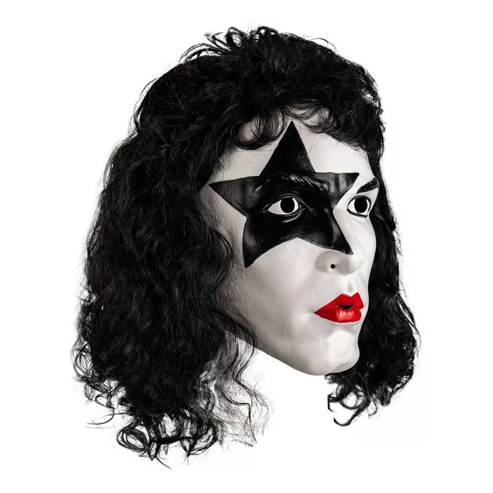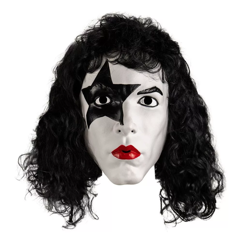 Trick or Treat Studios is proud to present the officially licensed KISS - The Starchild Deluxe Injection Mask. This deluxe face mask is made of rigid plastic sculpted and painted to look exactly like The Starchild on stage! The mask has an elastic strap to comfortably hold it in place with a styled wig attached to the mask for full coverage and easy wear.