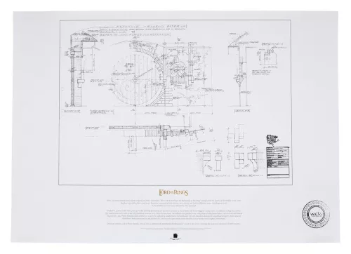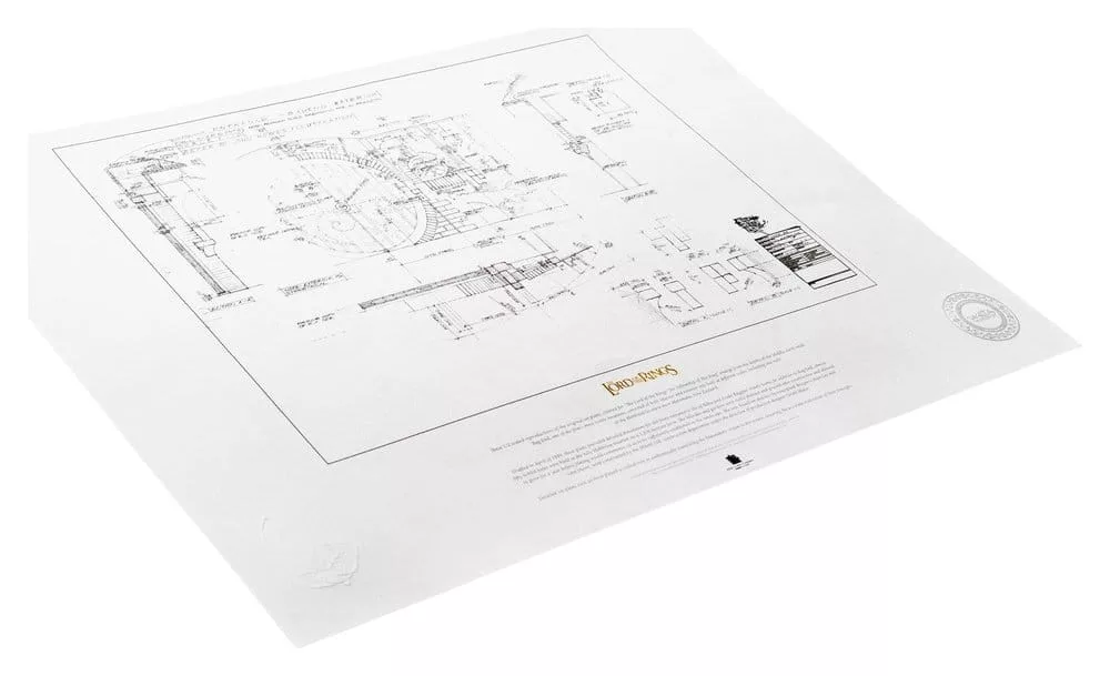 From the 'Lord of the Rings' trilogy comes this reproduction of the original set plan as art print. The dimensions of the print are 59 cm x 42 cm. A lovely cinematic format.