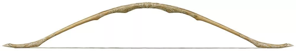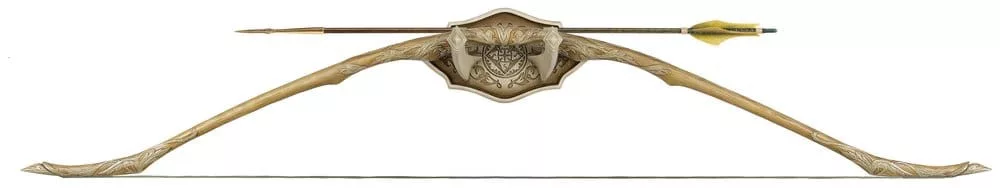 This replica of Legolas&trade.' Lothlórien bow, as seen in The Lord of the Rings&trade. films, captures the beauty and craftsmanship of the Elven weapon gifted to him by Galadriel&trade.. Made from steel-reinforced polyresin with intricate Elven leaf carvings and accurate coloring, it comes with a 38' replica arrow and a polystone wall display featuring Legolas' family sigil. Each bow includes a certificate of authenticity, making it a must-have for collectors.