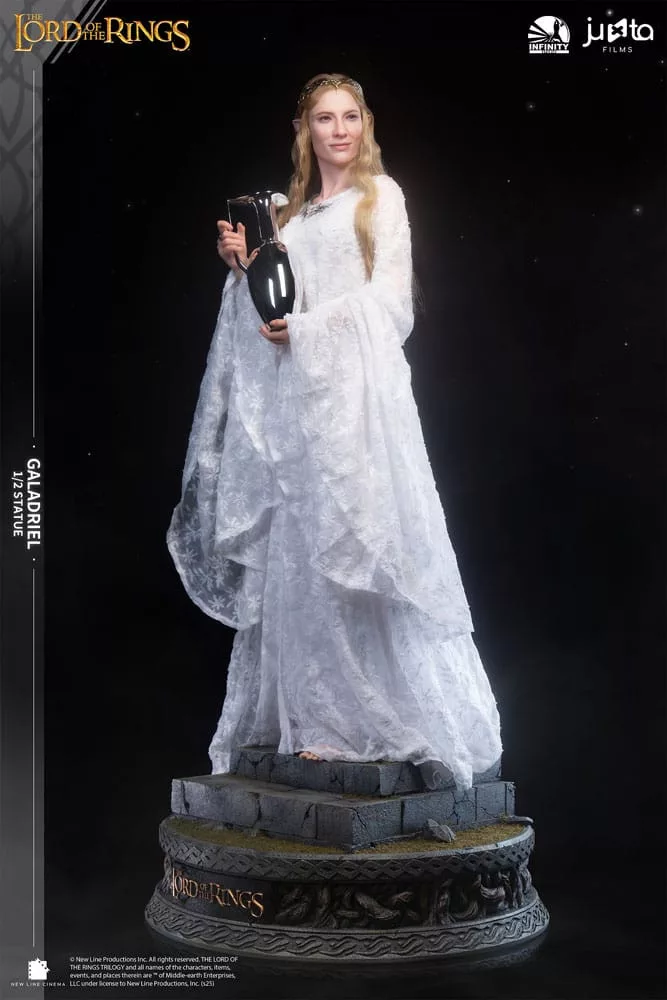 Galadriel's character is complex and profound, a combination of light and shadow, pride and wisdom. She is the light that guides Middle-earth, the undying star of Lothlórien. Now, Queen Galadriel, with the wisdom of the 'Mirror of Galadriel' and the elegance of the Elves, descends into the mortal world in a half-scale portrait pose.
