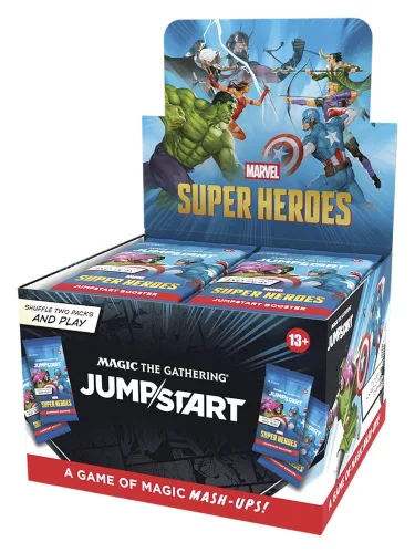 The game of chaotic combinations gets mashed up with the Marvel Universe! Just grab two packs, shuffle them together, and you’re ready to battle. You’ll find Marvel-themed packs constructed with power, fun, and versatility in mind. Plus, each pack has all the Lands you need, so there’s truly nothing standing in the way of a shuffle-two showdown! Each Jumpstart Booster contains 20 Magic cards. If you’re looking to maximize your mash-up, Magic: The Gathering Marvel Super Heroes Jumpstart packs are compatible with any other Jumpstart packs.