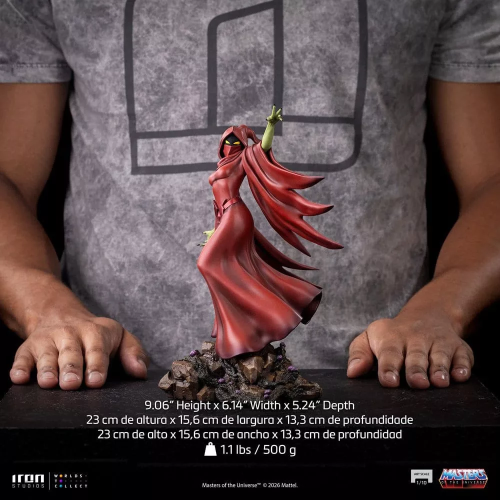 Produced by Iron Studios, this Art Scale 1/10 statue showcases refined sculpting and meticulously hand-painted finishes. From the flowing robes and concealed visage to the dramatic pose and themed base, every element is crafted to convey menace, intrigue, and the dark fantasy aesthetic that defines Eternia's most dangerous spellcasters.