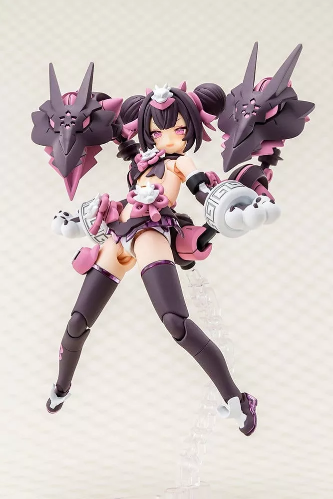 Introducing PUNI?MOFU LONG, the latest entry to Megami Device, a plastic model kit series combining Bishoujo-style beauties and heavy-duty weapons and armor! Long is the newest character to join the PUNI?MOFU series! Sharing the same petite body type as Mao and Tu, Long's signature weapons leave an impact with their twin dragon head design! The design is again handled by the illustrator BLADE! The Machineca Block2-S body is a smaller version of the Machineca Block2-M body designed by Masaki Apsy that fully realizes the cuteness of the concept art. Model Specifications: - The new character design illustrated by BLADE is based on a dragon concept. - The main weapons “Twin Dragon Fangs” feature multiple connection joints allowing for various action poses. - The newly designed skirt and wristbands create a unique silhouette from previously released PUNI?MOFU models. - Includes three face parts. - Includes stickers for the leg mark and colored parts. - Mix and match different parts to enjoy a variety of silhouettes, including the pure, unmodified proportions of “Unarmed Mode” and the fully equipped “Armed Mode.” - The parts can be configured to display the model in full armor for “Armed Mode,” or without armor for “Unarmed Mode.” - The machineca base body boasts an impressive range of flexibility, allowing it to be displayed in a variety of natural poses, such as holding a weapon at the ready or sitting down. - The kit includes a variety of weapons and joint parts that can be used to create different combat scenes. - A special base is included. - The 3mm connection points on each part and head compatibility parts allow this model to be customized with existing M.S.G, Frame Arms, Frame Arms Girl, Hexa Gear, Sousai Shojo Teien, Arcanadea, and Megalomaria series parts. What is “Megami Device?” Kotobukiya’s Megami Device series is a line of 14 cm (5½”) plastic model kits that come with a range of weapons and equipment that allow you to enjoy building and customizing your own Megami Device to use in robot battles. Each character has a main body, or “machineca,” designed by Masaki Apsy, while the models’ unique armor and mechanics are designed in collaboration with a variety of guest illustrators. The kits come with multi-colored parts and face parts pre-printed with tampography, making them easy to assemble with no paint required. The kits are equipped with 3mm joints, making them compatible with all of the weapons in the Megami Device line as well as Kotobukiya’s other plastic model kit series!