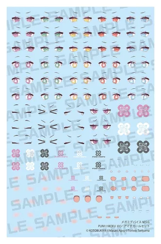 The support series for Megami Device is expanded upon with the latest addition, MEGAMI DEVICE M.S.G PUNI?MOFU LONG EYE DECAL SET! “Megami Device M.S.G” is a modeling support goods series compatible with Megami Device models. The decals are compatible with Megami Device PUNI?MOFU LONG. The set includes decals of eye colors and expressions not in the original kit, allowing for a model with a variety of new expressions and looks. The decals can also be used on Megami Device models other than Long as well. *This product is a decal set for Megami Device. Model not included.