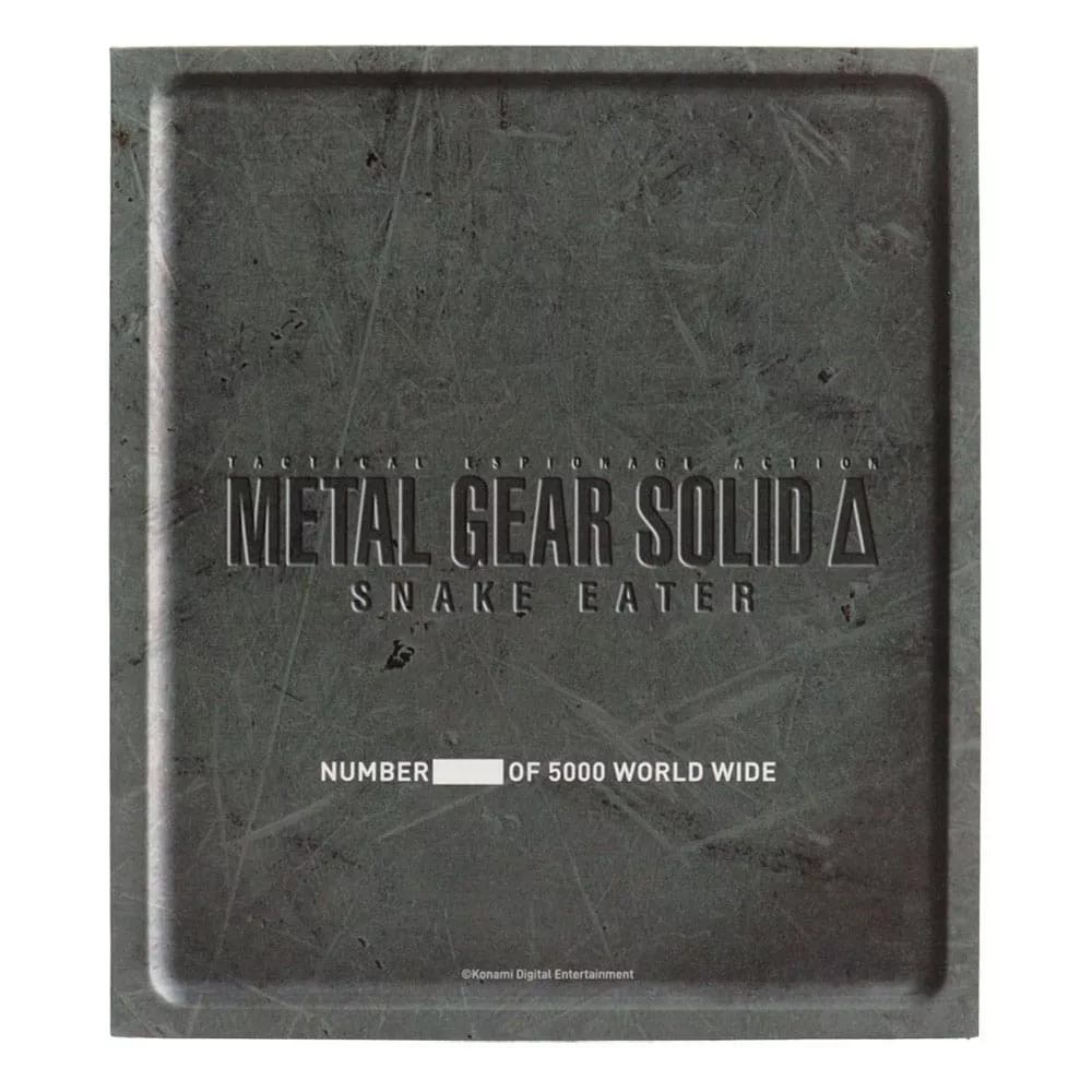 This limited edition collector set features items commemorating the game, comprising of a FOX unit sticker and set of dog tags, an antique silver plated ingot depicting the game's protagonist Naked Snake, an art card showing a black and white photograph of Naked Snake with a ''Goodbye'' message from Eva on the reverse, and a pin badge in the form of a Kerotan frog from the game, all packaged in an ammo case style box.