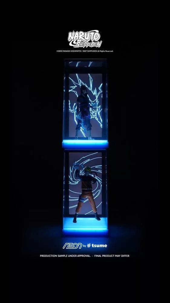 This is a 1/9 scale statue of Sasuke Uchiha from the Naruto series. Manufactured by Tsume as part of their NEON range. The display stand features a USB-C Daisy-Chain output and a USB-C Power input. Dimensions: 13 x 14 x 25 cm
