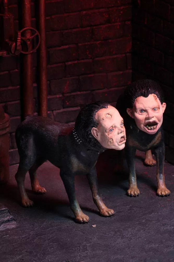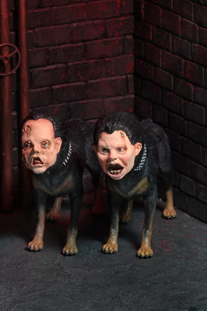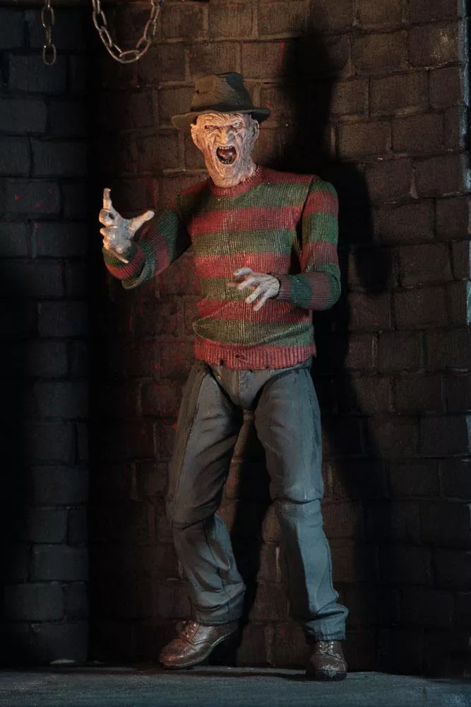 From the classic A Nightmare on Elm Street horror franchise, this definitive version of Freddy from Freddy's Revenge features plenty of gruesome detail and tons of accessories, including three interchangeable heads, two demonic dogs, gloved hand, bladed hand, and removable hat.