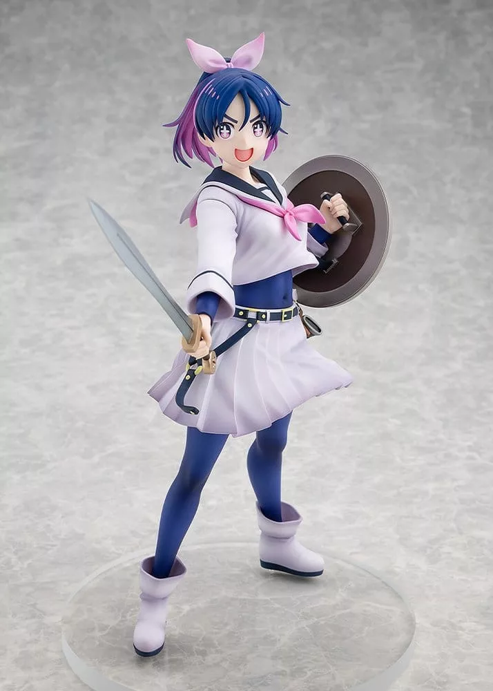 'There’s no way a beauty like me could lose!' Aki Jougamine, a second-year trainee Brave at the Academy, a Brave Training School, has been turned into a figure with a striking yet adorable pose as she readies her sword and shield! The light and airy sculpting captures the flowing features of the collar on her sailor uniform and her pleated skirt fluttering in the wind. Her iconic eyes and the pink accent in her ponytail have also been recreated in great detail. Be sure to add this recreation of the troublemaker, who is driven by her own sense of justice, to your collection.