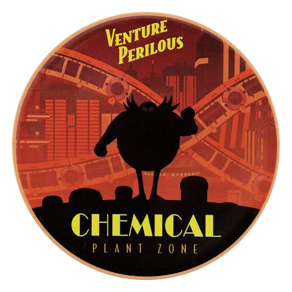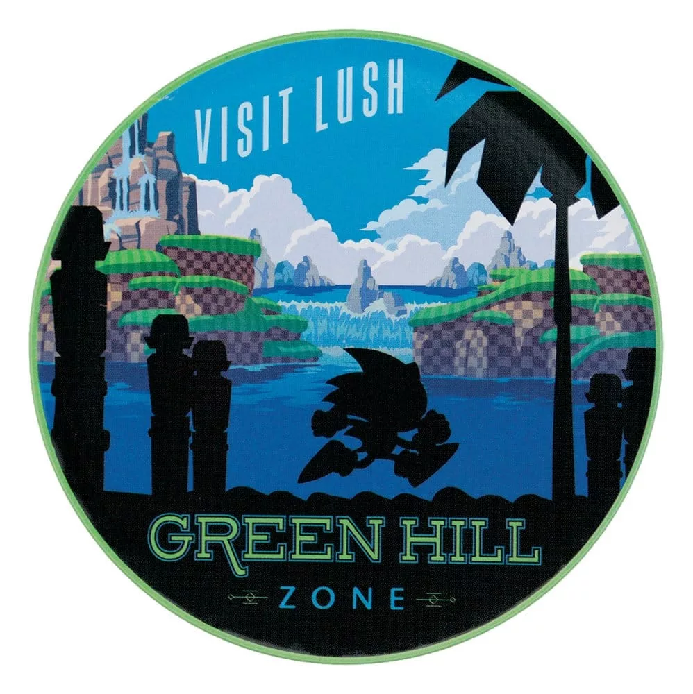 'South Island, Chemical Plant Zone, Labyrinth Zone, and of course, Green Hill: all iconic locations in the world of Sonic the Hedgehog, and all represented in this set of printed coasters. Made out of tin with a non-slip cork base, each coaster measures 89mm in diameter.