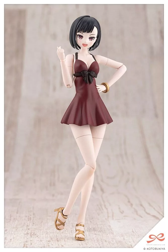 Body: This kit uses the body from Koyomi Takanashi Swim Style. The swimsuit has been changed to a dark red with antique gold accessories, completing a gothic-inspired look. The skin color is Skin Color C, making part swapping with kits such as Kuon Yakushiji[Maria Kagaribi Costume] and Dress Up Body[M] Color C Ver. possible. The sandal straps are pre-painted, creating an image close to the illustration with assembly alone. *A straw hat is not included in this kit.
