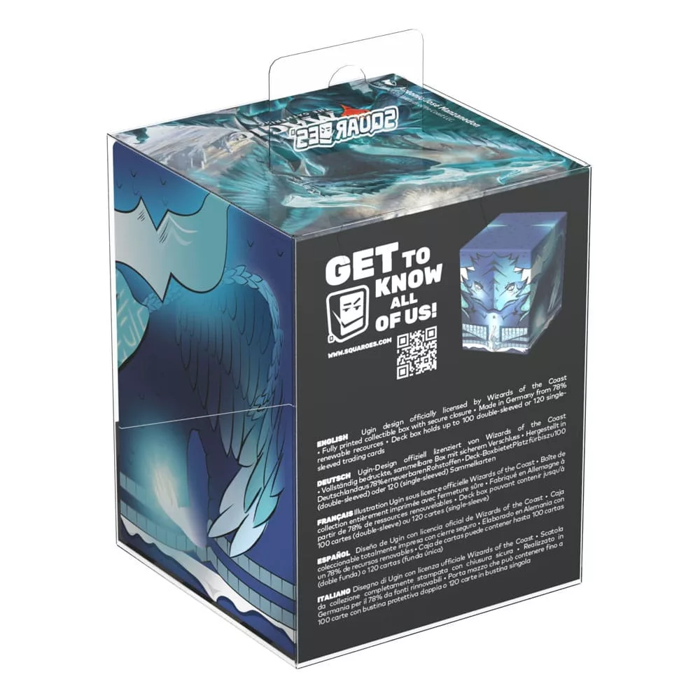 Collectible box for storing your deck, tabletop gaming accessories, and/or collectibles. The Ugin Squaroe from the Magic: The Gathering edition holds up to 100 cards in double protective sleeves if used as a deck box. Squaroes are made from 78% renewable recources.