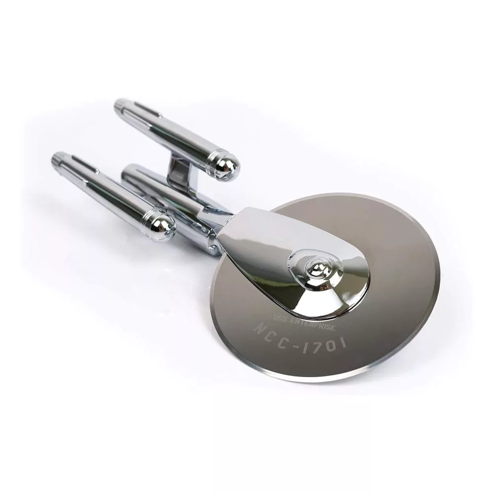 Officially licensed pizza cutter is approx. 21 cm long including blade. Based on the U.S.S. Enterprise NCC-1701 from Star Trek: The Original Series.