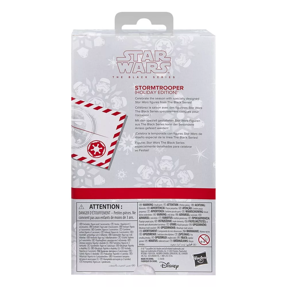 Star Wars The Black Series includes 6 inch action figures, vehicles, and roleplay items from the 40-plus-year legacy of the Star Wars galaxy, letting fans create galactic scenes with a faithfulness to Star Wars comic books, movies, series, and more. This Star Wars Hasbro action figure is detailed to look like a festive stormtrooper. With exquisite features and decoration, The Black Series embodies the quality and realism that Star Wars devotees love. May the Force be with you! (Additional products each sold separately. Subject to availability.)