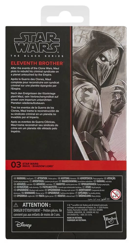 Star Wars The Black Series includes 15,2 cm action figures, vehicles, and roleplay items from the 40-plus-year legacy of the Star Wars galaxy, letting fans create galactic scenes with a faithfulness to Star Wars comic books, movies, series, and more. This Star Wars Hasbro action figure is detailed to look like the Eleventh Brother from Star Wars: Maul – Shadow Lord. (Additional products each sold separately. Subject to availability.)