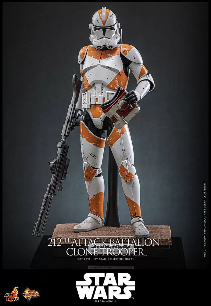 Sideshow and Hot Toys are excited to present the 212th Attack Battalion Clone Trooper&trade. Sixth Scale Collectible Figure, meticulously crafted to honor the valor and legacy of this iconic unit. The Star Wars action figure features a finely crafted helmeted head with battle weathering. Dressed in a finely crafted set of white armor painted with bold orange patterning and weathering effects, the trooper's uniform replicates the worn armor as seen in the film. His utility belt is accented with orange detailing, and his boots also show authentic wear from countless engagements.