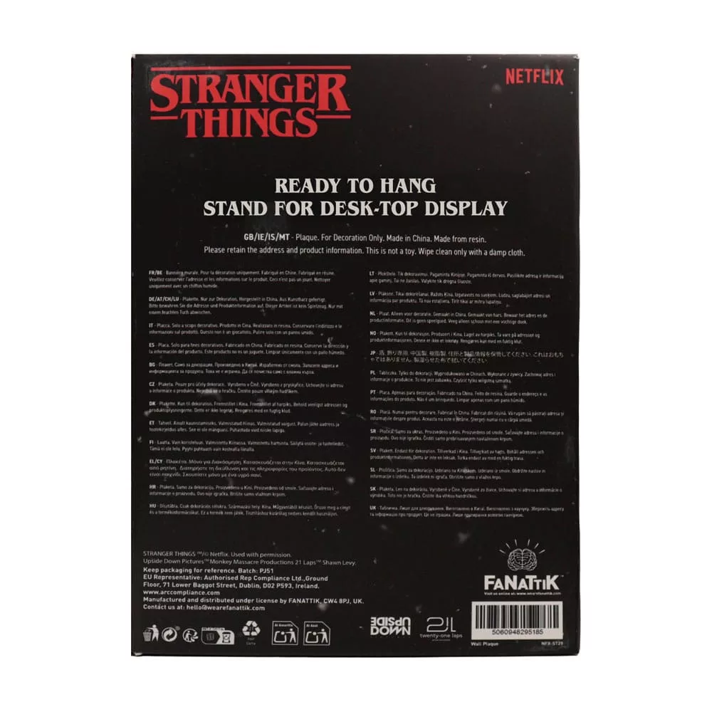 Featuring both a desk stand, and wall-hanging hooks, the plaque is officially licensed and measures 200 x 131mm.