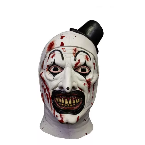 Designed by Russ Lukich. Trick or Treat Studios and Dark Age LLC are proud to present the Official Terrifier Killer Art the Clown Mask! This amazing mask is a perfect version of the makeup worn by Art the Clown in the Cult Classic, Terrifer. Every detail of Art the Clown is included in the mask including his crazy eyes, pointy nose, maniacal grin and bloody face. So order the your Official Terrifier Art the Clown Mask today and Terrify the neighborhood this Halloween!