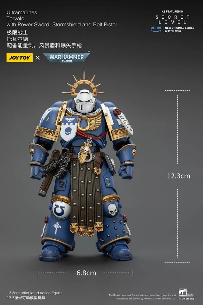 Warhammer 40,000 Action Figure Ultramarines Torvald with Power Sword, Stormshield and Bolt Pistol 13 cm