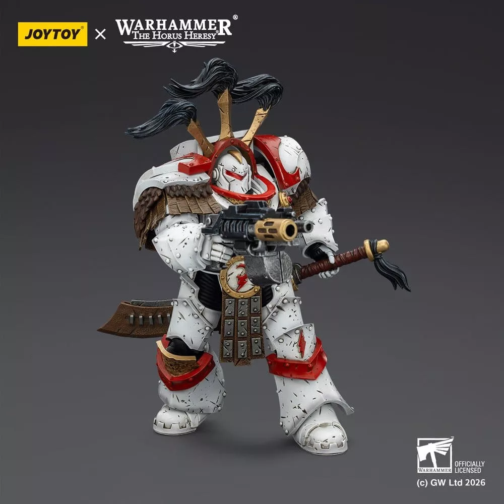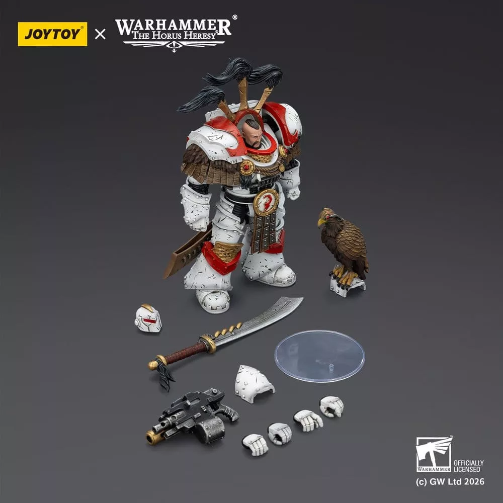 Warhammer 40,000 Action Figure White Scars Legion Praetor in Cataphractii Terminator Armour with Cyber Hawk Chogorian sword and combi-melta 14 cm