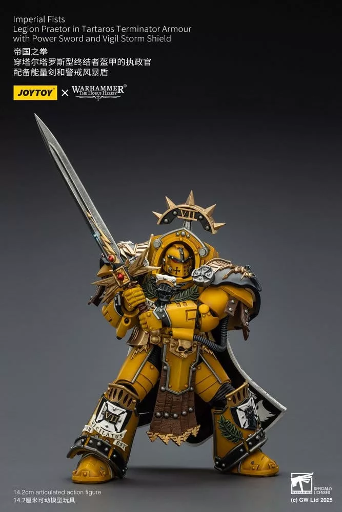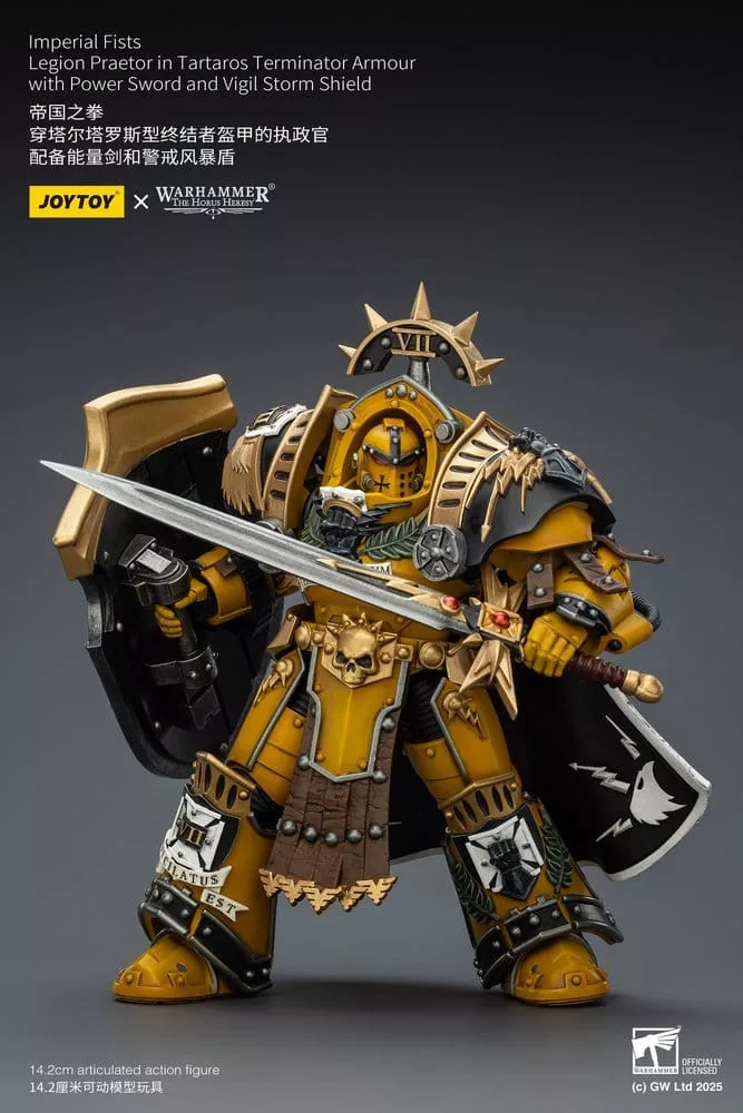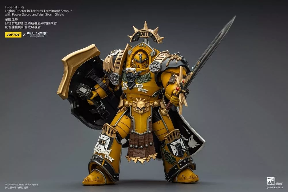 Warhammer Imperial Fists Action Figure Legion Praetor in Tartaros Terminator Armourwith Power Sword and Vigil Storm Shield 14 cm