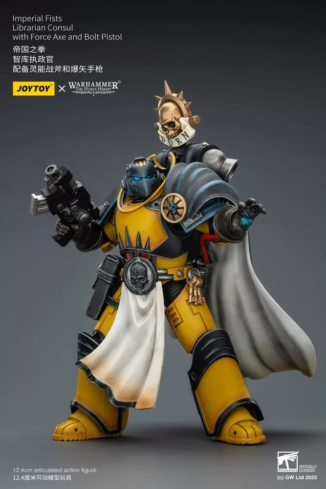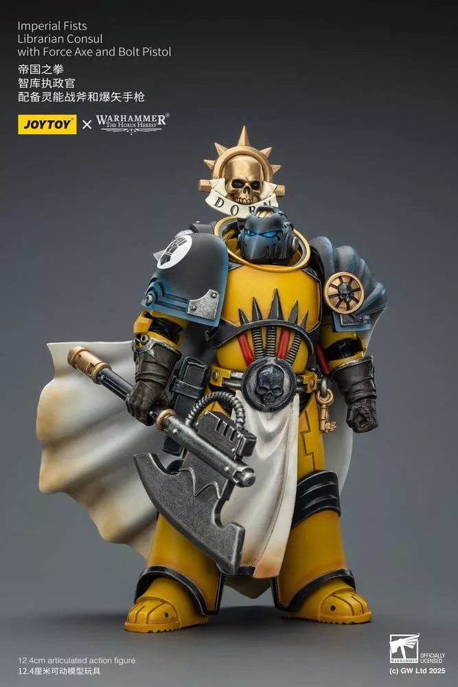 Warhammer Imperial Fists Action Figure Librarian Consulwith Force Axe and Bolt Pistol 12 cm