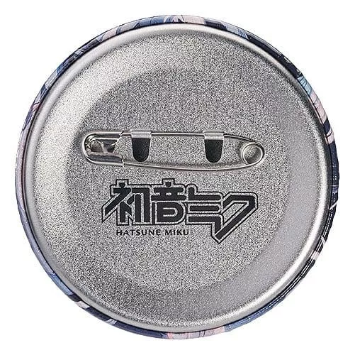 This pinback button features a holographic blue base with a mystical shine. The stand on the back glows in sunlight, making for an eye-catching display. Be sure to add the benevolent smiling Miku to your collection!