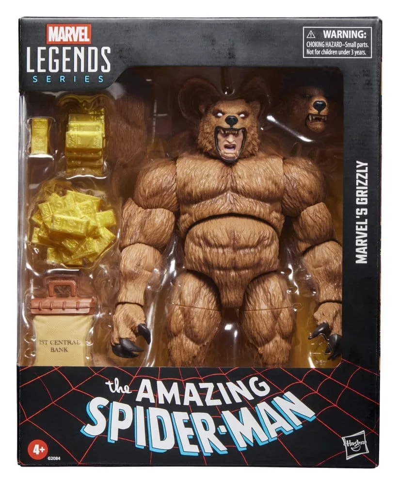 Bring the excitement and wonder of the Marvel Universe to your collection with Hasbro Marvel Legends Marvel’s Grizzly figure! This collectible 6-inch scale Marvel action figure is detailed to look like the character from Marvel's Spider-Man comics. Marvel’s Grizzly action figure is fully articulated with premium design and poseable head, arms, and legs. This action figure set comes with 7 accessories: alternate bear head with articulated jaw, 2 stacks of gold bars, loose gold bar, money bag, and 2 alternate claws. Hasbro Marvel action figures' 6 inch scale make them great for posing and displaying in fans' collections. Pose Marvel’s Grizzly mid-heist or use the alternate head for a fully-articulated bear hero or villain and reimagine Spider-Man comics-inspired scenes on your shelf with Marvel Legends action figures and Marvel collectibles.