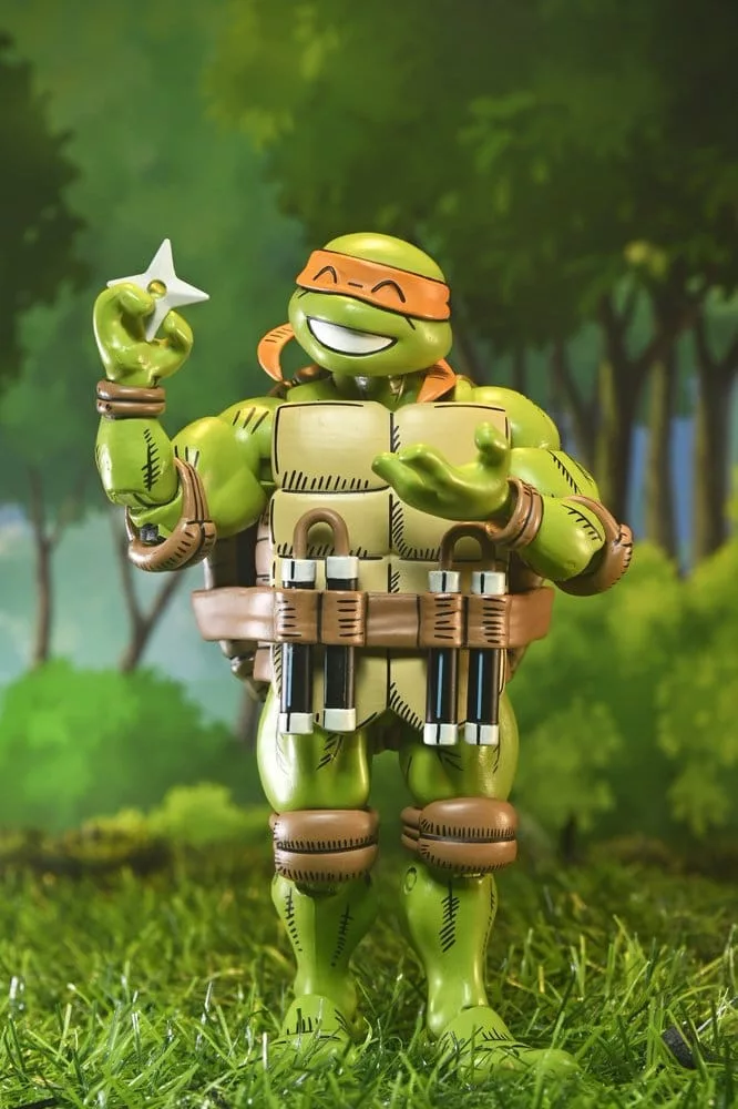 Celebrate over 40 years of Teenage Mutant Ninja Turtles comics and Usagi Yojimbo! Based on the work of legendary artist Stan Sakai and produced in collaboration with Dogu Publishing, this Ultimate Michelangelo features all-new sculpts and authentic, stylized comic book deco. The 7-inch scale NECA action figure includes interchangeable heads and hands and his signature nunchucks. Comes in collector-friendly window box packaging with opening front flap. Size: 17.8 cm (7.00')