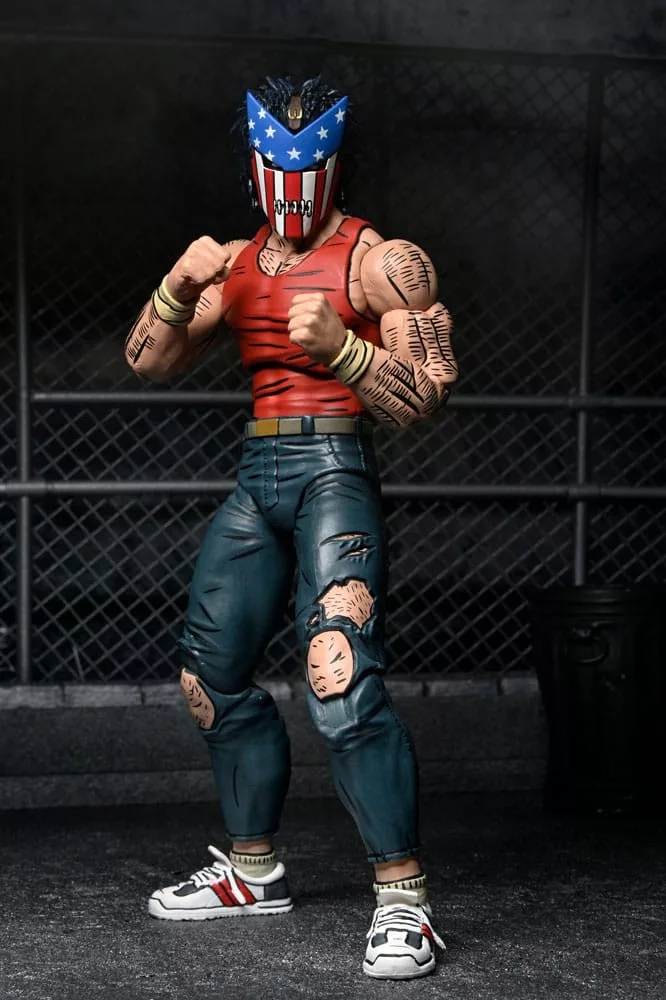 From Eastman & Laird's Teenage Mutant Ninja Turtles comic books from Mirage Studios! Upgrade your TMNT collection with this Ultimate Casey Jones action figure from NECA. Featuring an all-new sculpt and mask with American flag deco, this figure of everyone's favorite sports fanatic vigilante stands in 7-inch scale. Accessories include interchangeable heads and hands, hockey stick, gloves, bottle, chainsaw, and extra hands. Comes in collector-friendly packaging with original artwork by Kevin Eastman.