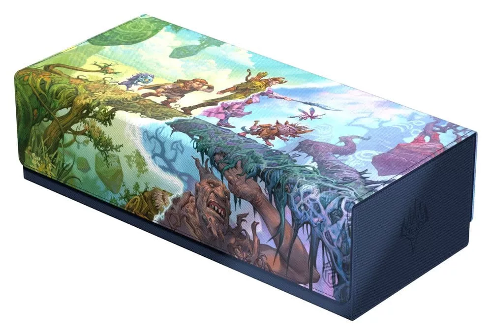 Ultimate Guard's Arkhive 1000+ Xenoskin with officially licensed artwork from Magic: The Gathering's 'Lorwyn Eclipsed' set is the perfect MTG mass storage box for storing and carrying multiple deck boxes and/or a large number of single cards. The completely removable lid is secured on both sides with a strong magnetic closure as well as Ultimate Guard's trusted ZnapClaw mechanism. In addition, the durable Xenoskin case and microfiber inner lining ensure excellent protection for up to 1125 double-sleeved cards in Ultimate Guard sleeves*, ten Boulder 100+ deck boxes, or six Boulder 133+ deck boxes. Thanks to its capacity, the Arkhive 1000+ Xenoskin is also the ideal deck box for storing a cube.