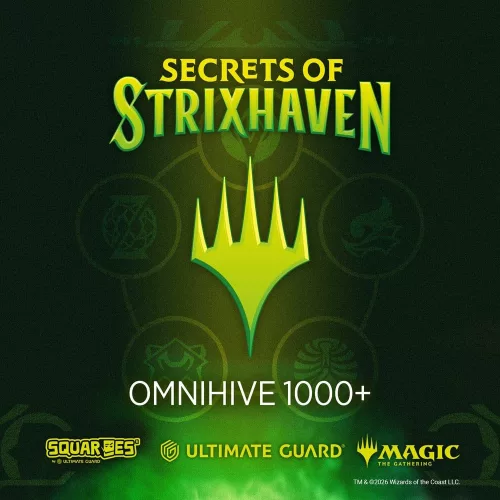 Ultimate Guard's Omnihive 1000+ Xenoskin with officially licensed artwork from Magic: The Gathering's 'Secrets of Strixhaven' set is the ultimate MTG mass storage box for decks, cards, and accessories. Designed to hold multiple MTG deck boxes and/or play-mats simultaneously, it features two flexibly positionable and stackable magnetic dice trays over two compartments, durable Xenoskin material, high-quality microfiber inner lining, a strong magnetic closure and Ultimate Guard's trusted ZnapClaw mechanism. With capacity for eight Sidewinder 100+ or six Sidewinder 133+ deck boxes, the Omnihive 1000+ Xenoskin also holds up to 1000 double-sleeved cards in Ultimate Guard sleeves*, making it the perfect storage box for a cube.