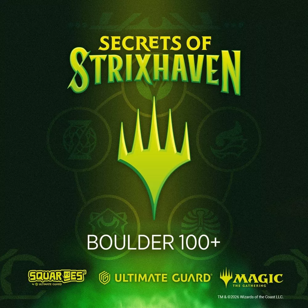 Ultimate Guard's RTE Boulder 100+ is a durable and reliable Magic: The Gathering deck box made in Germany from 78% renewable resources. Despite its secure closure, the RTE Boulder 100+ is easy and convenient to open and holds 100 double-sleeved cards in Ultimate Guard sleeves*, making it the ideal deck box for all Magic formats (Commander/EDH, Modern, Standard, etc.). The MTG deck box features a vibrant, full-color print with officially licensed artwork from Magic: The Gathering's 'Secrets of Strixhaven' set and comes in eco-friendly packaging made from 100% recycled and further recyclable materials. Designed to combine with all Ultimate Guard mass storage boxes, Boulders fit especially well into Arkhive, Superhive, and Flip'n'Tray boxes.